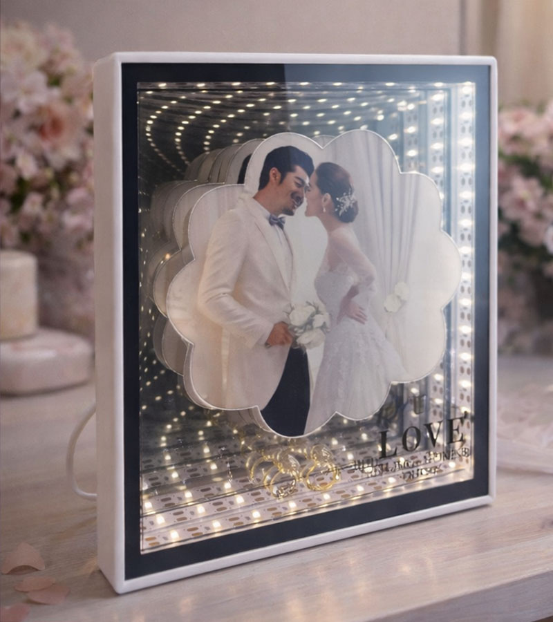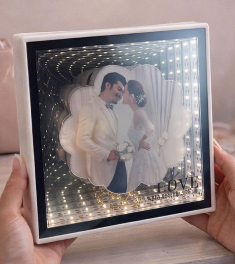 Wanneer de LED-verlichting is ingeschakeld, verandert de lijst in een verlichte fotoframe met een magisch diepte-effect.